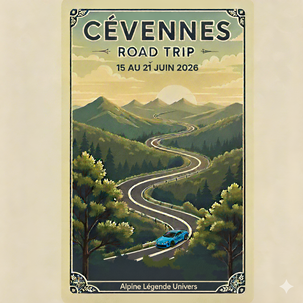 Alpine Legende Univers annonce son grand retour dans les Cevennes à l’occasion d’un nouveau roadtrip du 15 au 21 juin 2026. Infos et inscriptions à venir prochainement !